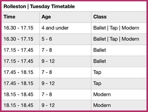 The length and structure of the class is based on the child's age, experience and ability, meaning that there is a class to suit your needs.